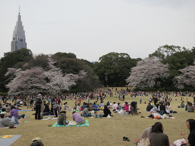 In this weekend, lots of people came to this park to enjoy cherry blossoms... Japanese are crazy for them, LOVE Sakura. The building back side is Docomo Tower, the mobile phone company's building. Looks like the Empire State Building?